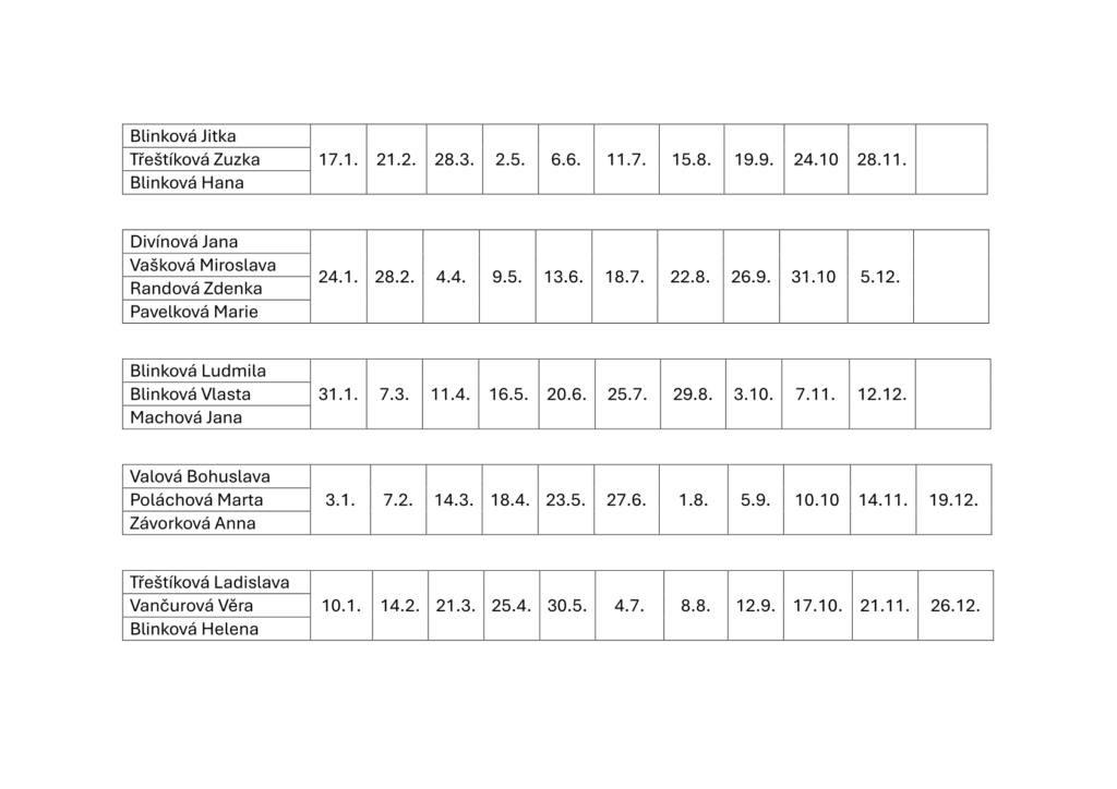 Rozpis úklidu kostela v roce 2026:
